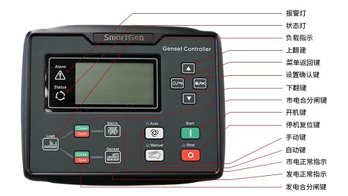 運(yùn)行狀態(tài)指示包括電壓、電流、頻率、功率、功率因數(shù)、水溫、油壓、轉(zhuǎn)速和運(yùn)行時(shí)間等參數(shù)。